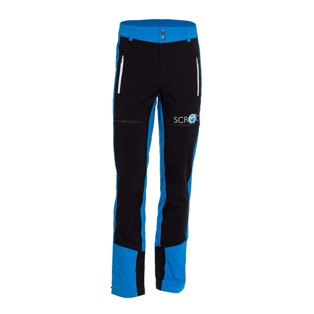 Die Merino Hose Herren ist slim fit geschnitten und trägt das Logo am linken Oberschenkel. Die SCROC-Kugel ist am rechten Unterschenkel platziert.